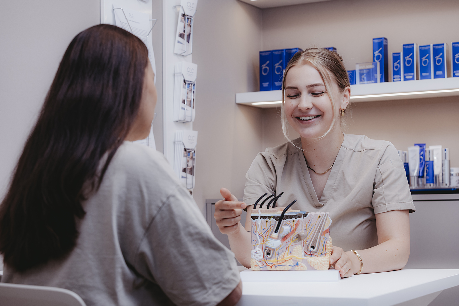 Gemiddeld zijn 8 tot 10 laserbehandelingen nodig met tussenpozen van 6 tot 8 weken, afhankelijk van jouw haargroei en huidtype. Niet alle haren zitten tegelijk in de juiste groeifase, daarom zijn meerdere sessies essentieel. Per behandeling evalueren we het resultaat en passen we de techniek aan voor het meest effectieve resultaat.